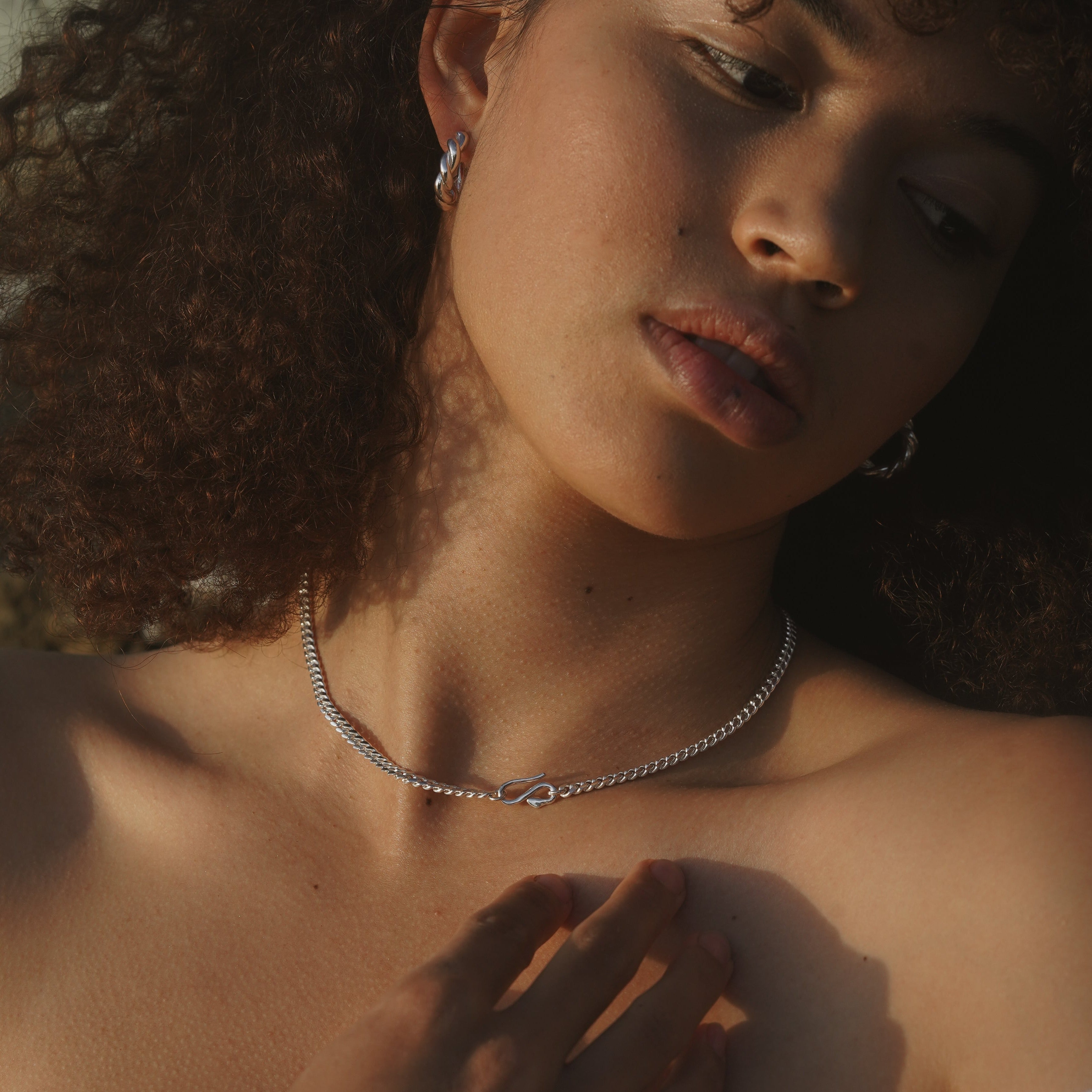 Inspired by the Roman “Good Goddess” Bona Dea, who was associated with serpents and snake-charming. A dependable curb chain necklace.