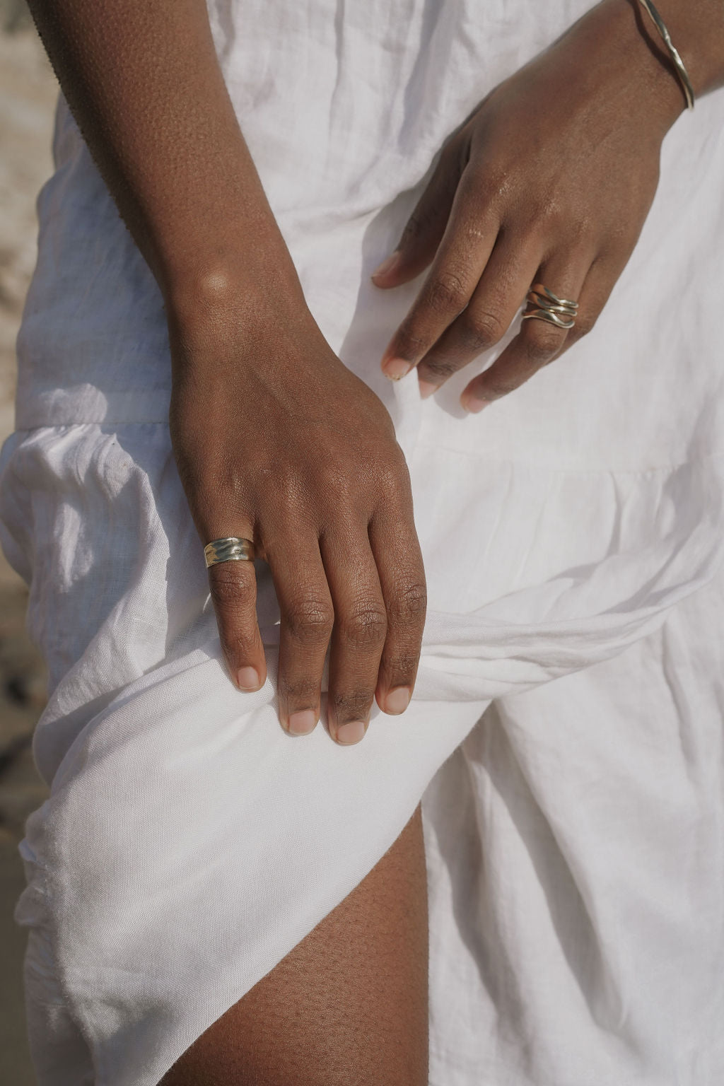 Like a melody carried on the breeze, the Aria Ring embodies a soft, flowing wave. Hand-sculpted in wax with an organic, irregular shape, it creates delicate ripples of negative space when stacked, making it the perfect layering ring. The name Aria stems from the Italian word for "air".