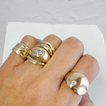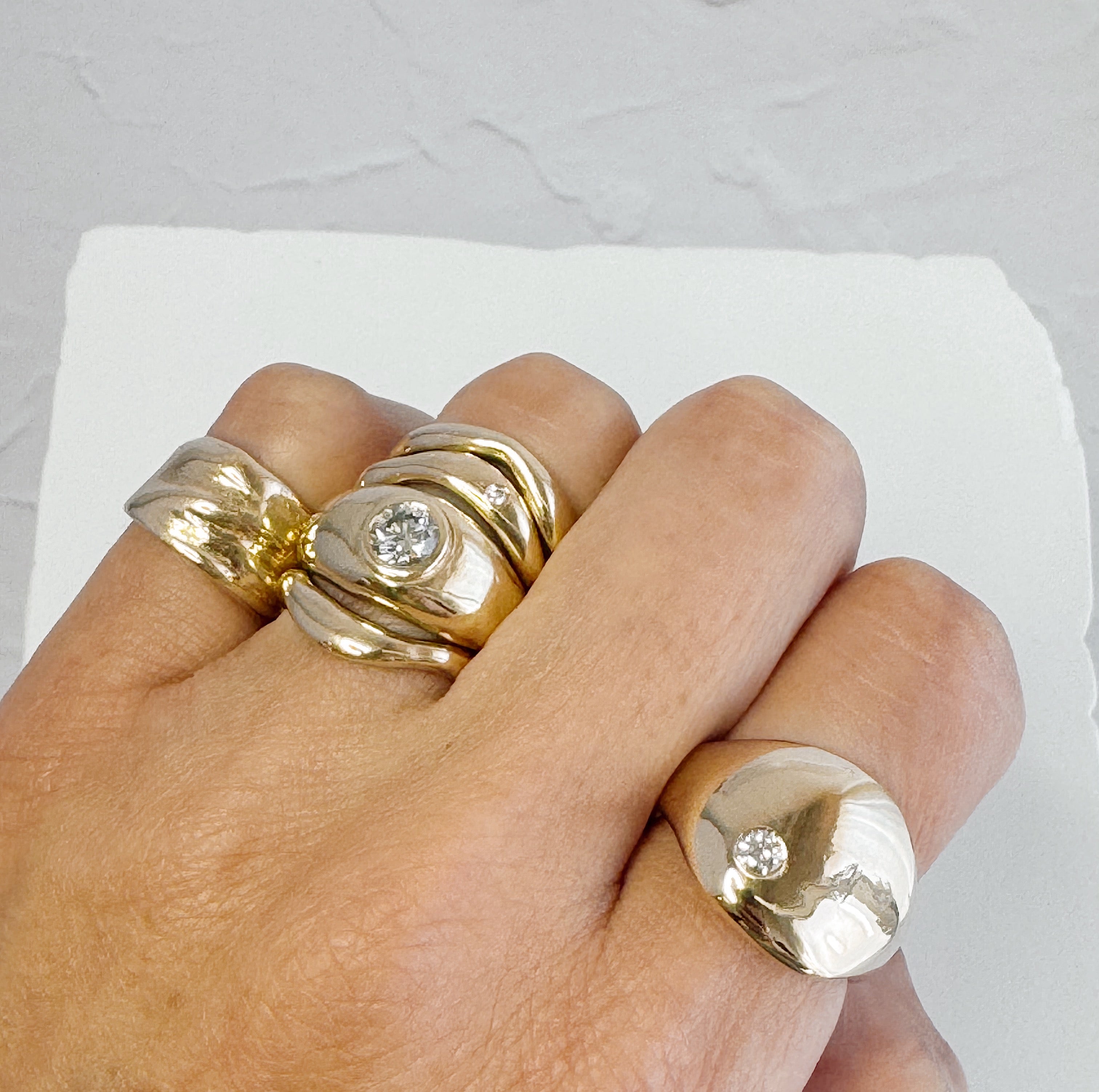 A bold statement ring and a feminine take on the classic signet with an offset diamond accent.