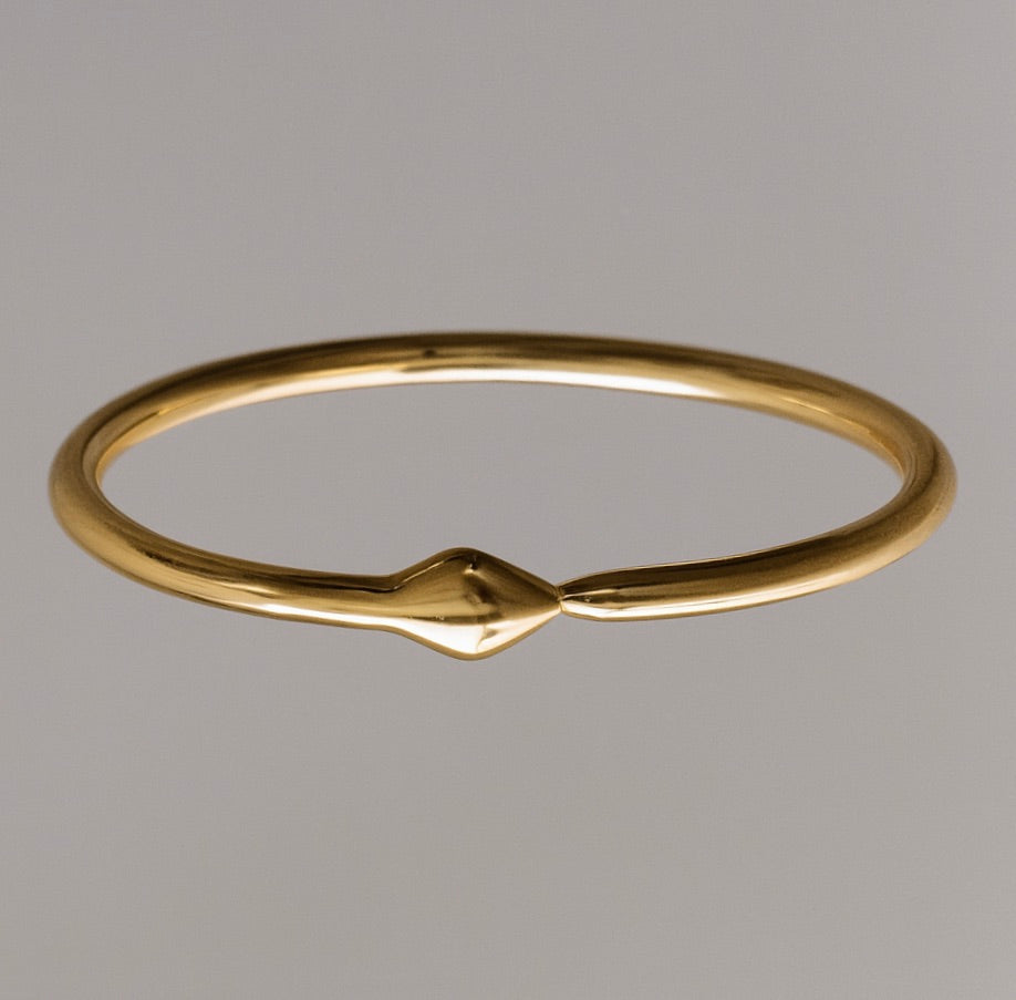 A modern, minimal, yet unmistakably statement piece, the Snake Bangle brings quiet power to the wrist. Hand-carved with a sleek, fluid silhouette, it nods to one of the oldest symbols in history: the serpent—an emblem of transformation, protection, and ancient wisdom.
