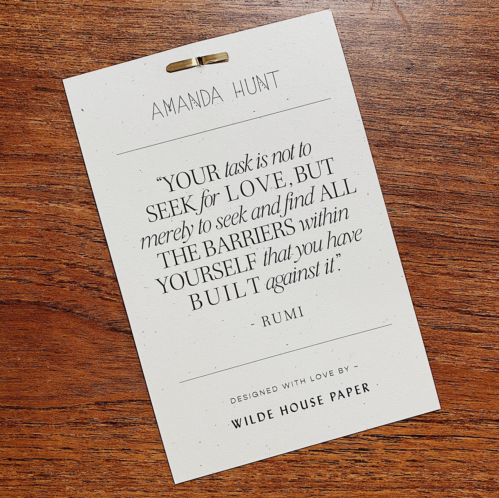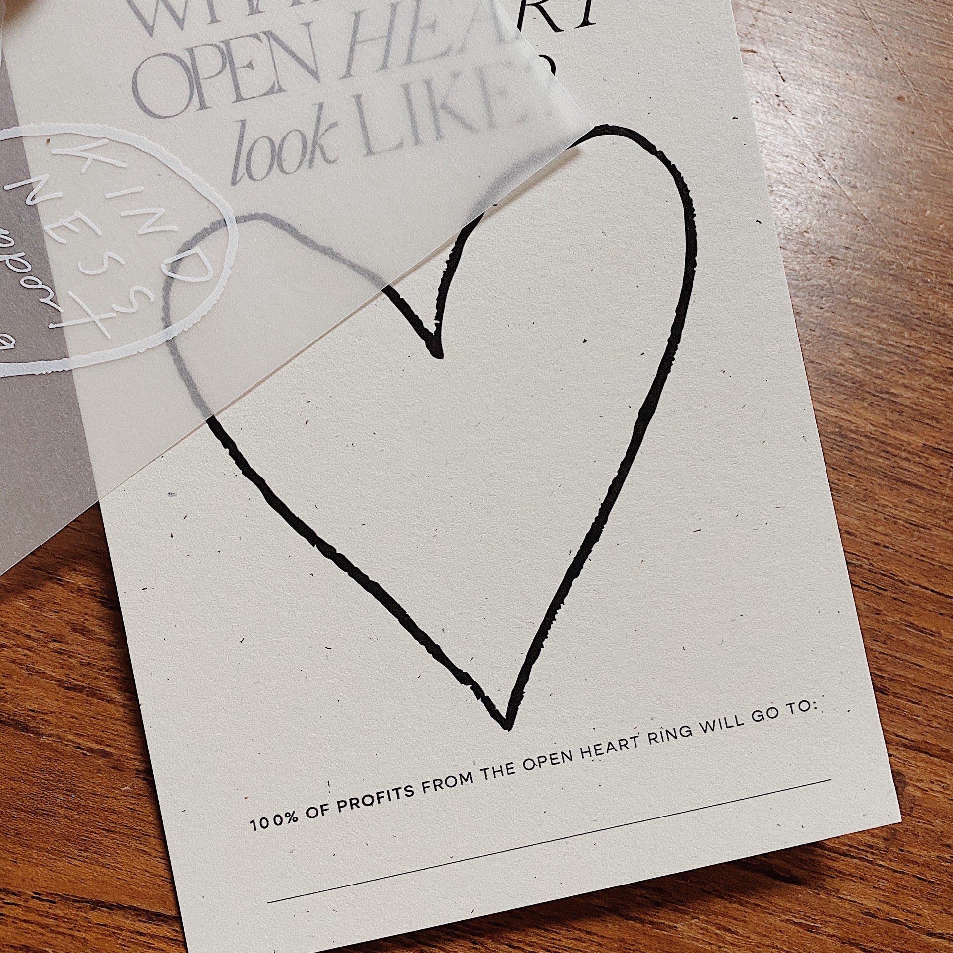 The Open Heart Ring comes with an intentional postcard designed by Wild House Paper to have as a keepsake and inspire your reflections on love.