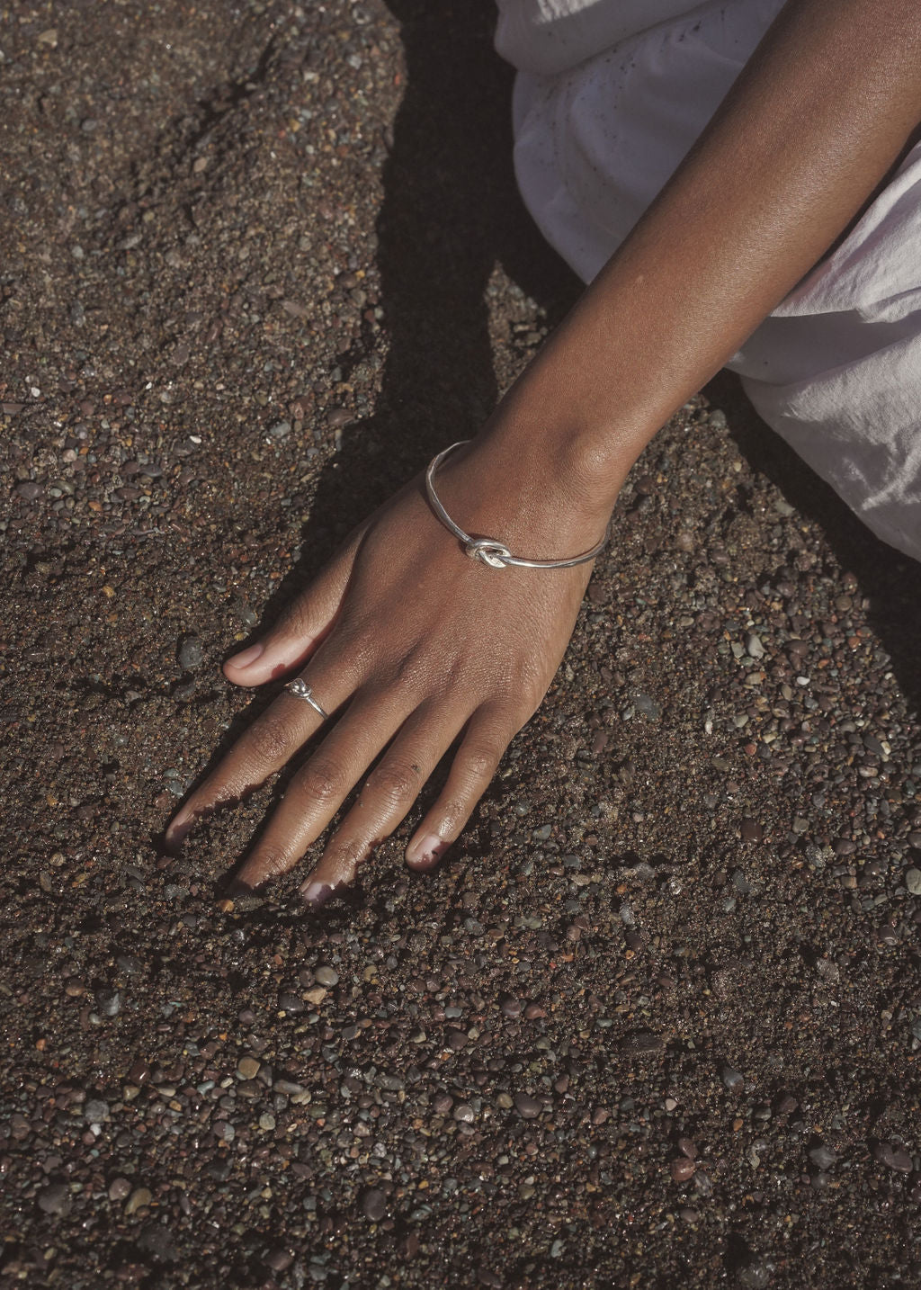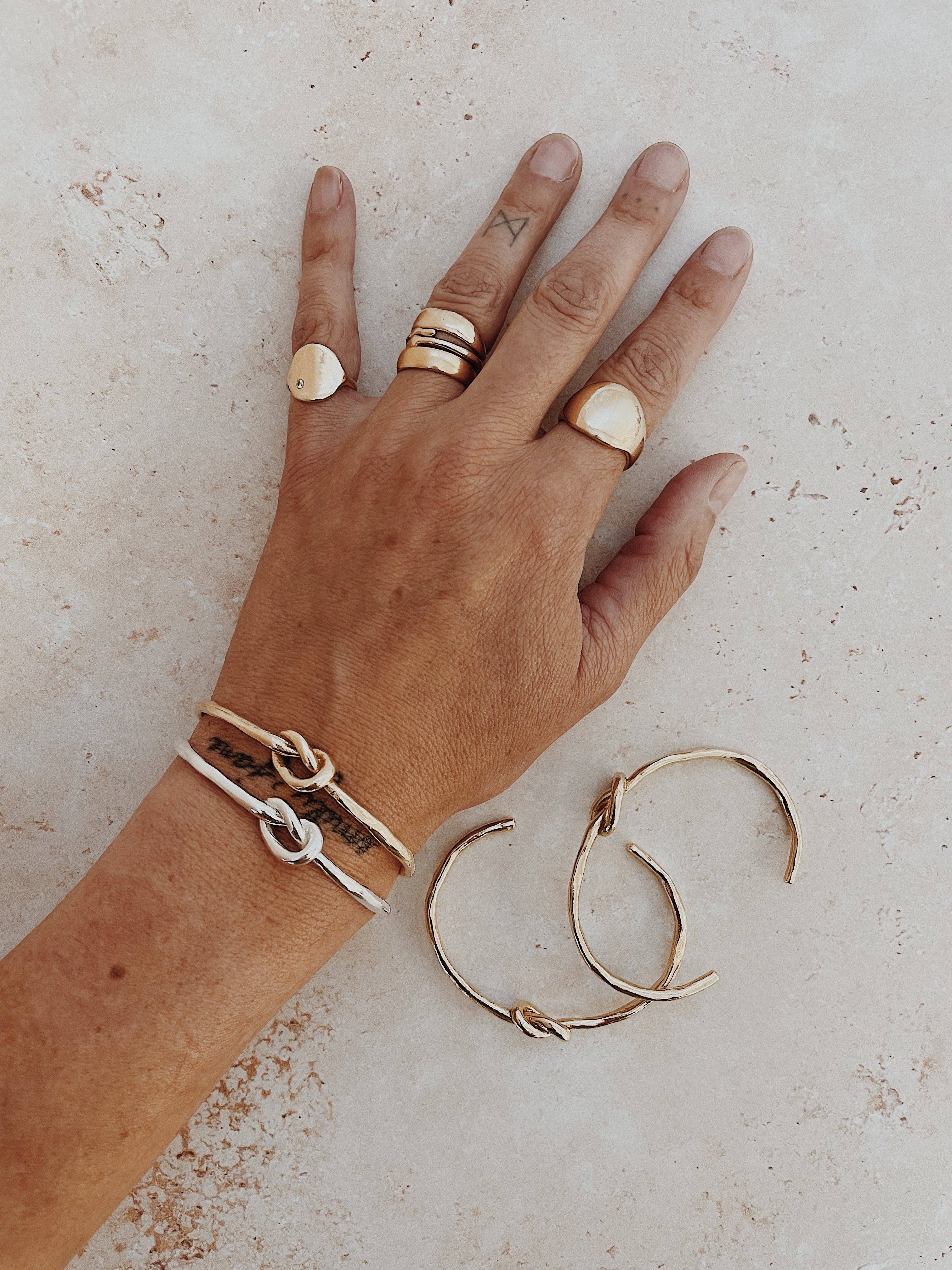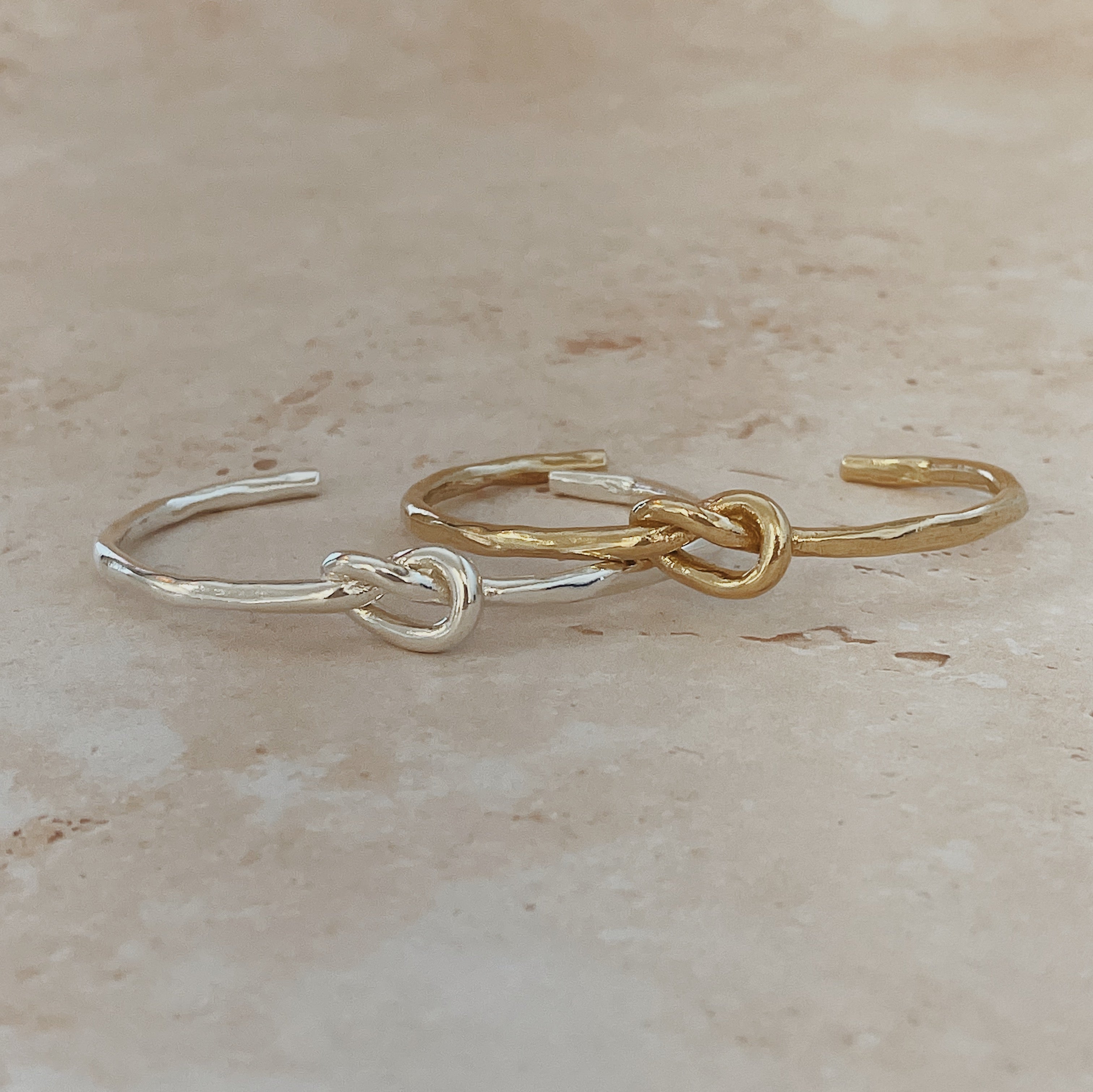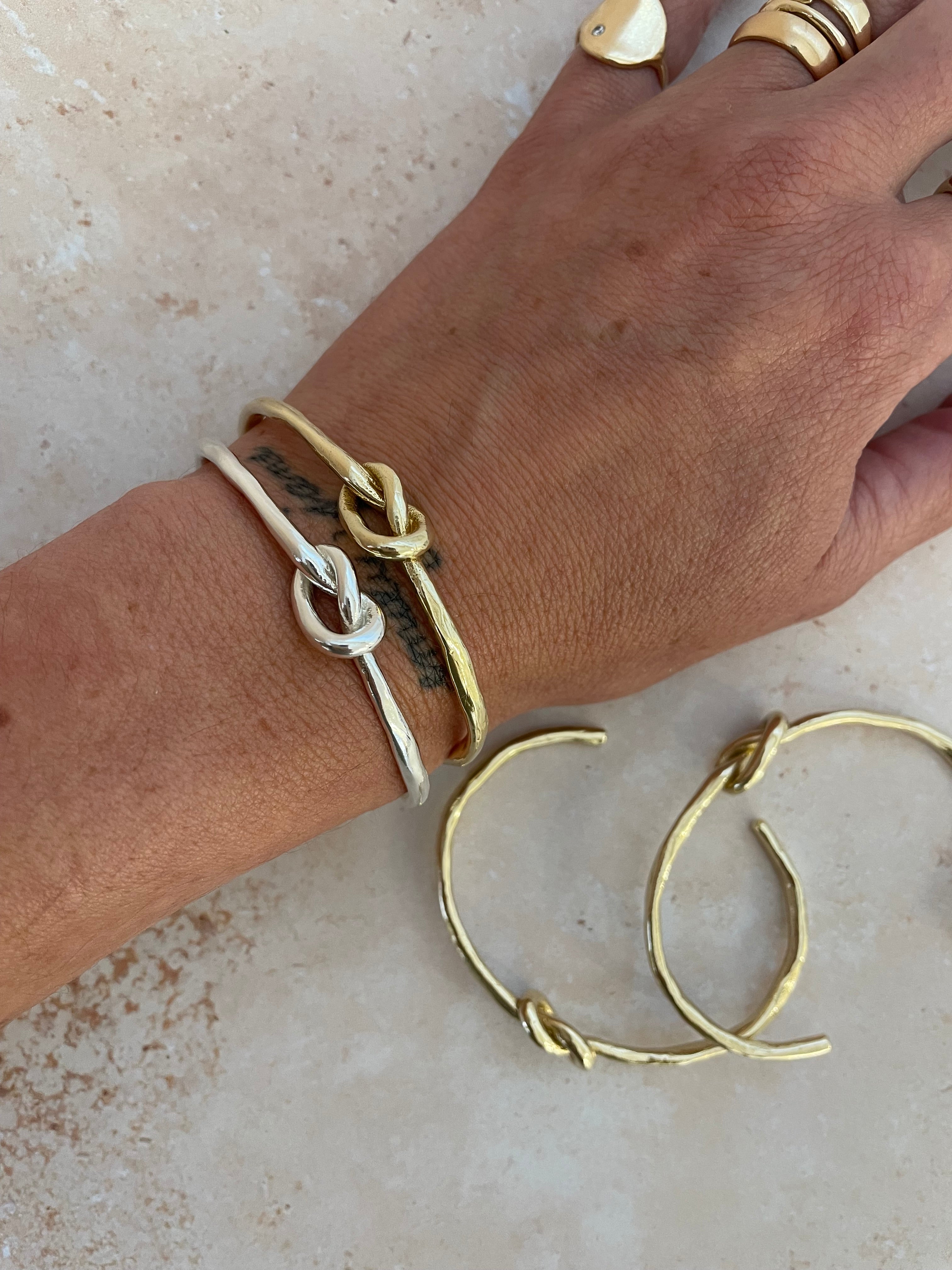 A hand sculpted knot cuff Each knot of the Nodo Collection was hand formed in wax to echo the movement and flow of the art of tying, then cast and preserved in the indelible medium of metal.  Knots are timeless symbols of love, luck, and remembrance.