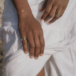 Like a melody carried on the breeze, the Aria Ring embodies a soft, flowing wave. Hand-sculpted in wax with an organic, irregular shape, it creates delicate ripples of negative space when stacked, making it the perfect layering ring. The name Aria stems from the Italian word for "air".