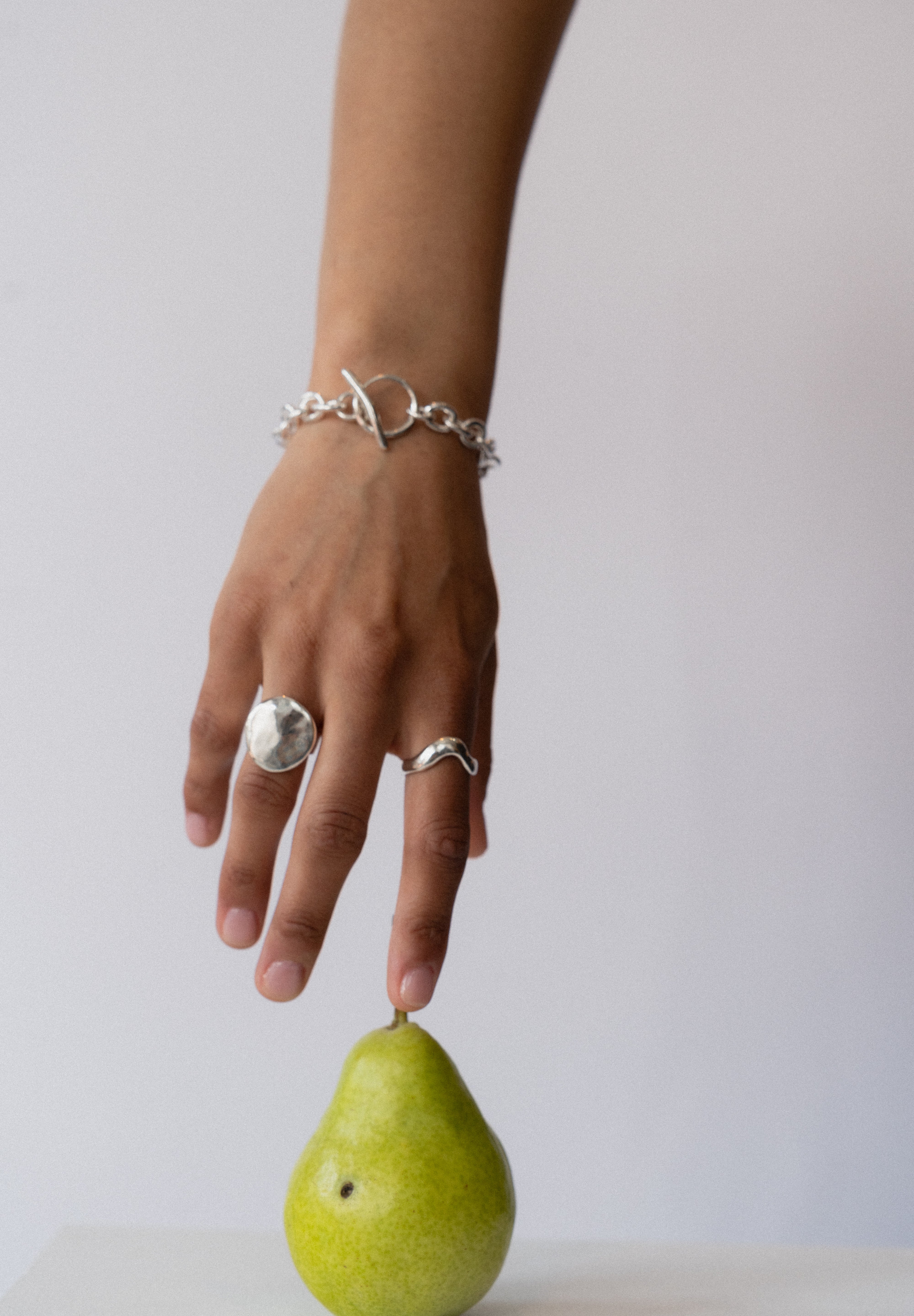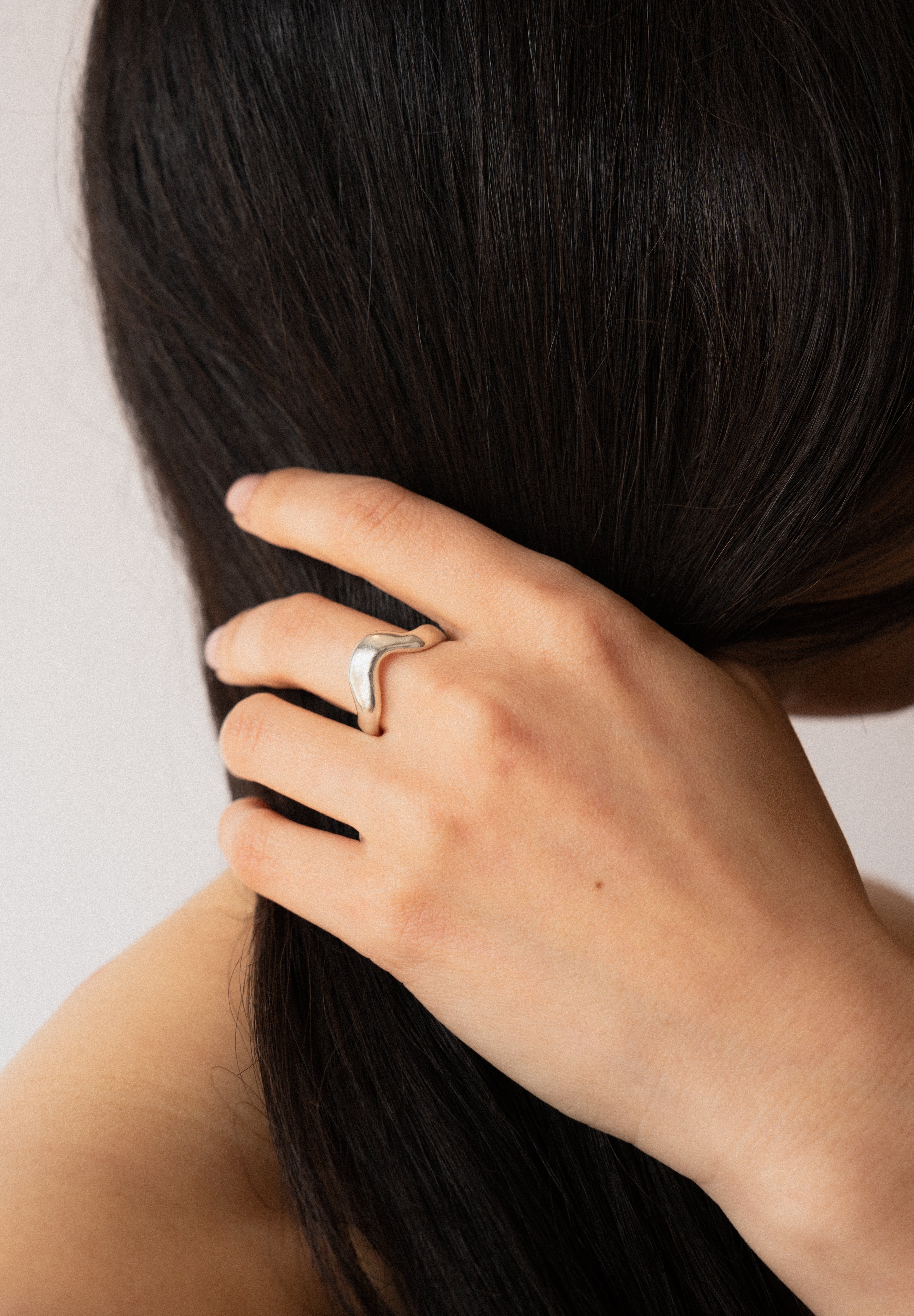 Hand formed in wax with an irregular shape and deeper curve, the Selene Ring offers a bolder, chunkier alternative to its sister, the Aria Ring.